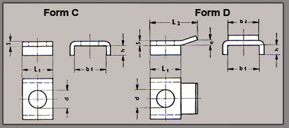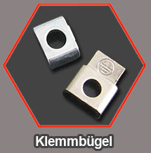 Die Klemmbügel werden generell in Stahl verzinkt oder Messing vernickelt geliefert; andere galvanische Überzüge aus Wunsch.